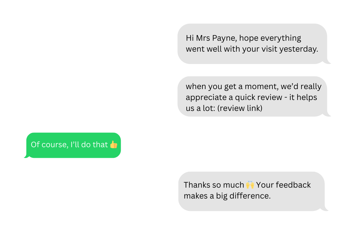 Send a friendly WhatsApp message after their first visit to build loyalty.